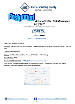 Your Arizona section leaders would like to welcome everyone to a presentation and shop tour at Caid
