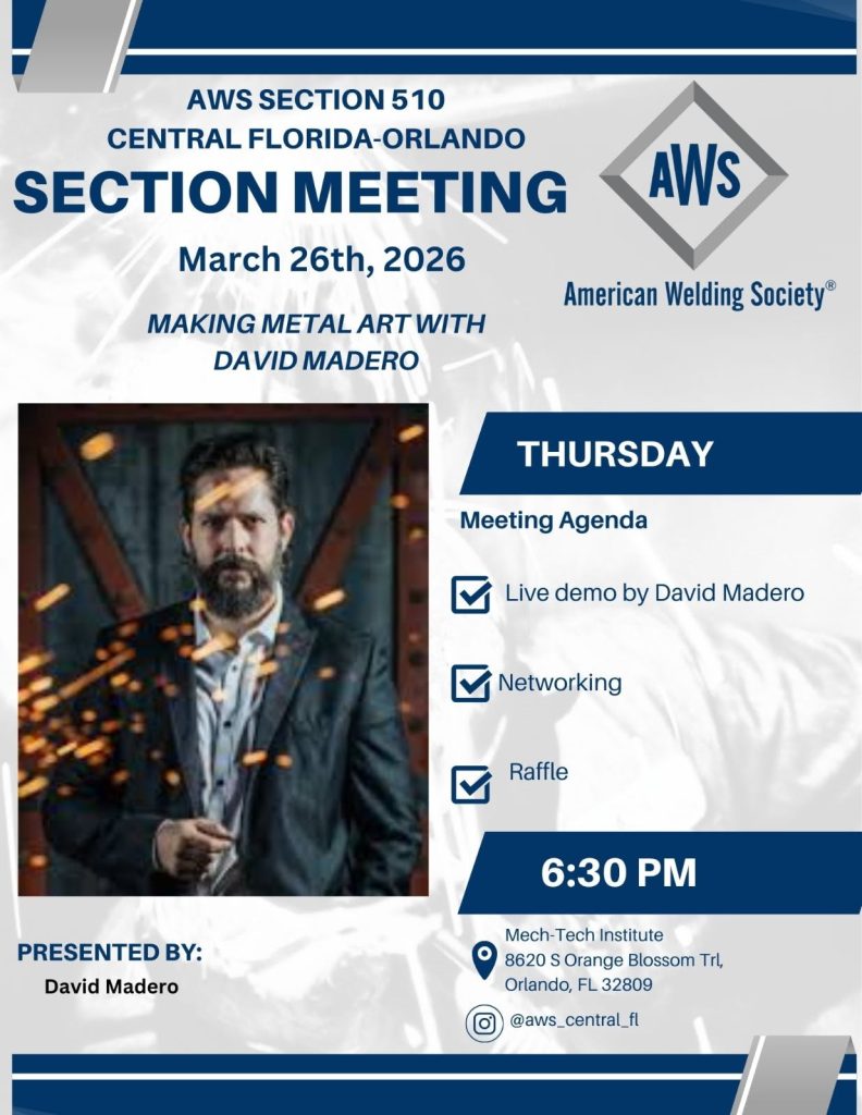 Along with David’s presentation, the evening will include time for networking with fellow professionals and a raffle for attendees. The event will be held at Mech-Tech Institute, located at 8620 S Orange Blossom Trail, Orlando, FL 32809.