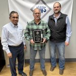 Randy Carr is presented an award of appreciation by Viji Kuruvilla and Nick Garner