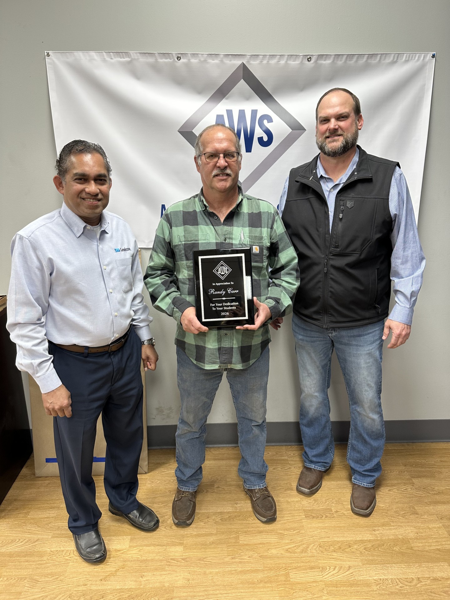 Event Summary: The AWS Central Arkansas Section was pleased to have special guests CJ Parks and Randy Carr from the West Side School District as guests for the February 26, 2026 section meeting. CJ is a SkillsUSA Arkansas and SkillsUSA Winner and Mr. Carr is his coach. District 17 Director, Viji Kuruvilla, presented CJ with an American Welding Society competition scholarship, and presented an award of appreciation to Mr. Carr for his long time dedication to his students and to advancing the welding trade.