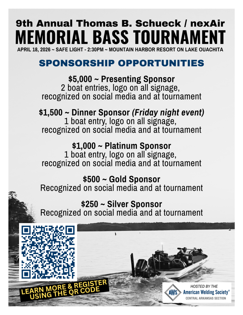 We are a little over a month away from the AWS Central Arkansas Section Thomas B. Schueck / nexAir Memorial Bass Tournament.