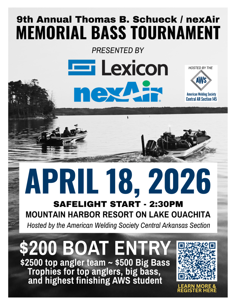 All proceeds benefit the Thomas B. Schueck & nexAir Scholarship Funds which support Arkansas students attending Arkansas welding training programs.