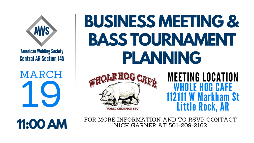 Make plans to attend the next AWS Central Arkansas Section meeting on Thursday, March 19.