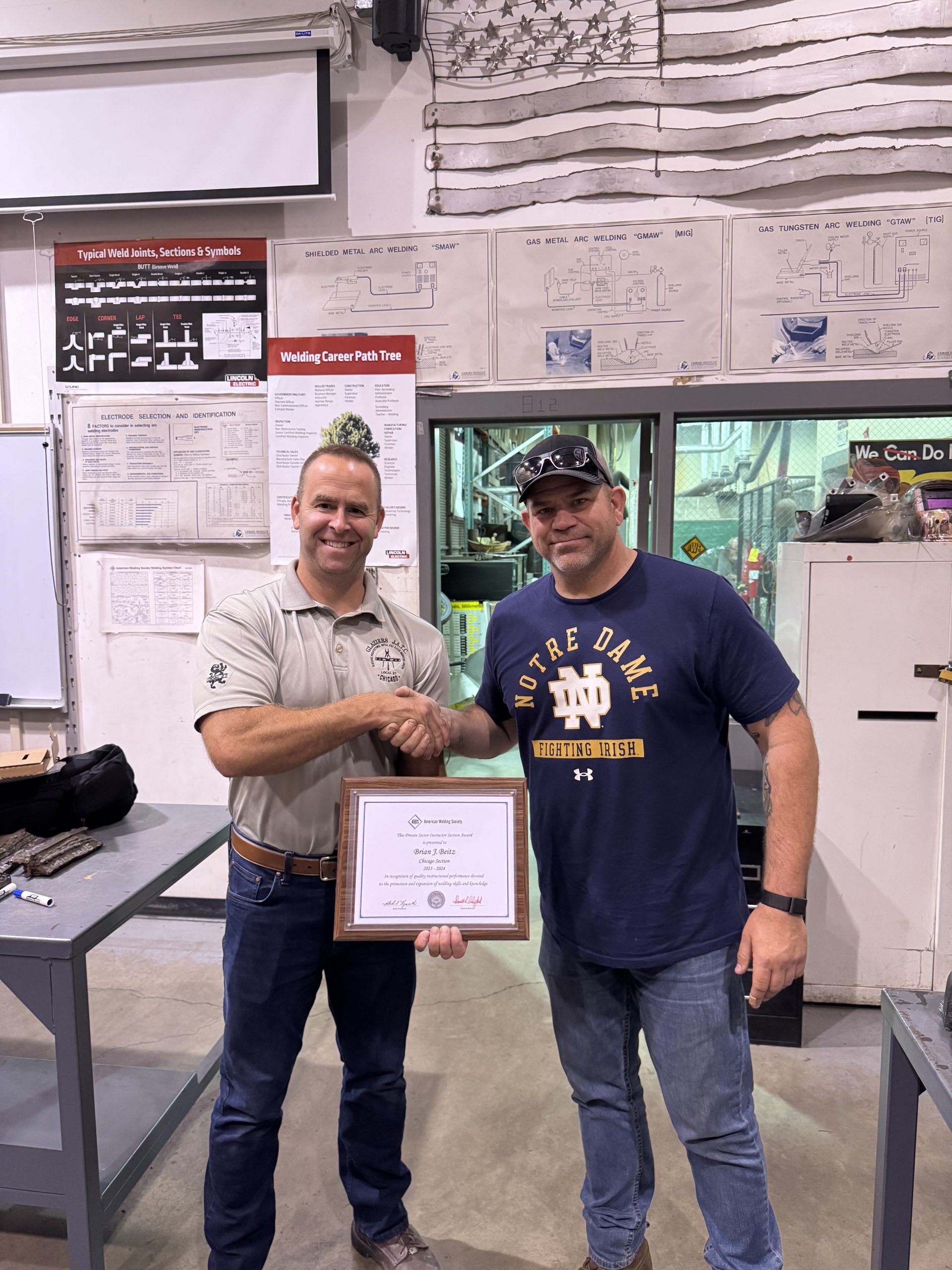 By lcohnOctober 24, 2025Category: Post Event Report Date of Event: 10/24/2025Location: Glazers JATC and pipefitters 597 training schoolNumber of Attendees: 3Presenter/Notable Guest(s): Brian Beitz and Adam SutterEvent Summary: The award presentation photos of Mr. Beitz & Mr. Sutter from Dave Viar of D13 section 2