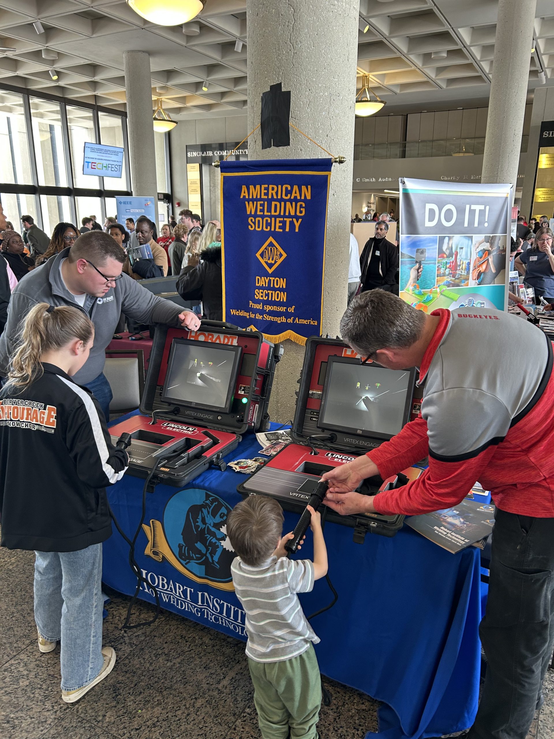 Event Summary: Dayton AWS staffed a hands on virtual welding booth at the annual Tech Fest STEM fair put on by the Affiliated Societies of Dayton on February 14 and 15, 2026. Over 1,500 kids attended the event over the weekend. Several had reported it as their favorite activity at the event. We wish to thank the Hobart Institute for the loan of the virtual welders and our volunteers that staffed the exhibit.