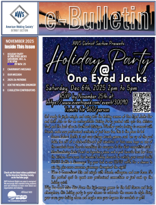 Our online bulletin has all of the latest welding news and events from the Detroit Section. Click below to view the current issue and sign-up to receive the eBulletin via email.