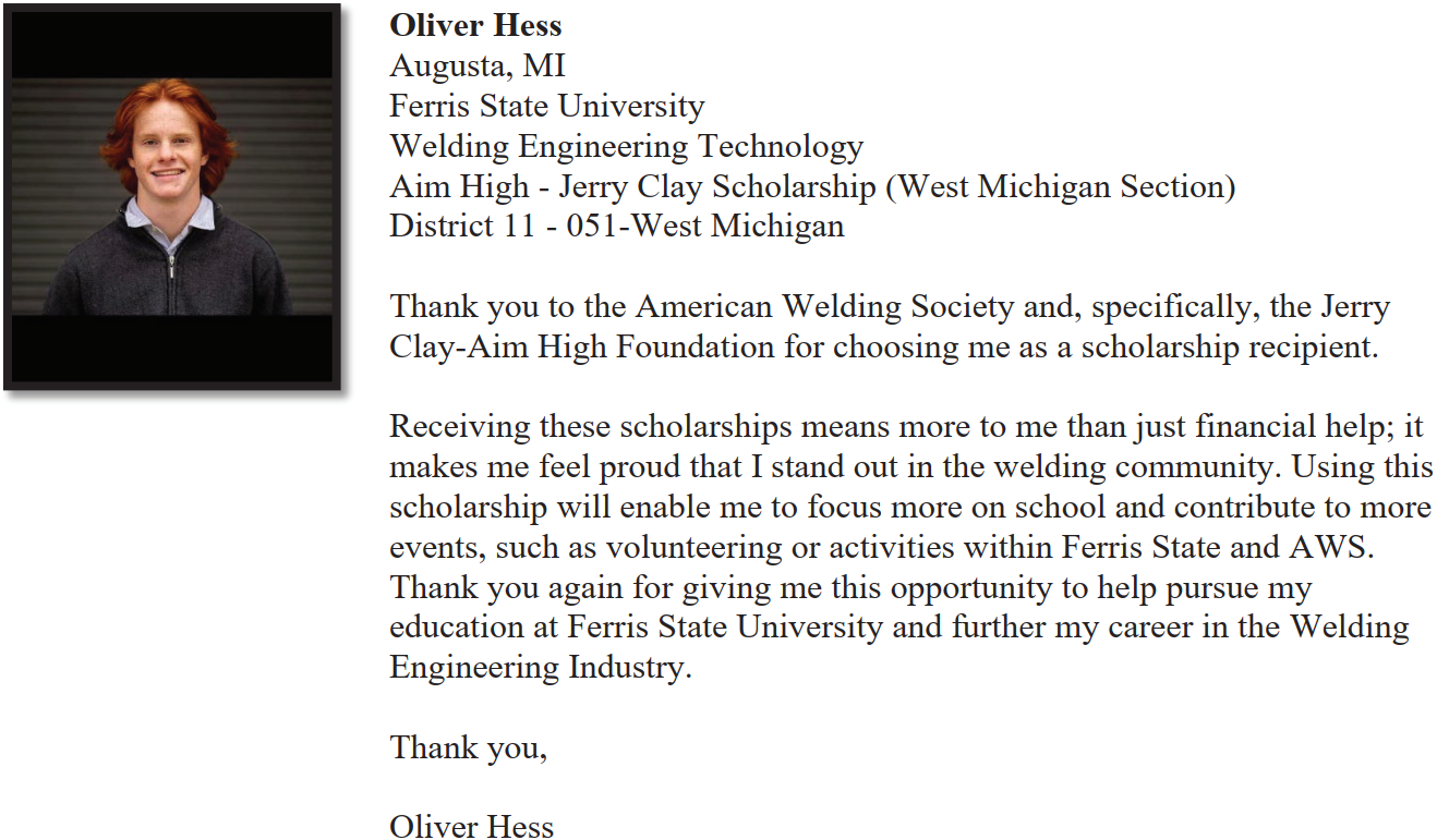 We provide scholarships to students who are attending universities, community colleges, and trade schools. This year the AWS Detroit Section has awarded 31 welding scholarships totaling $65,000. This Scholarship program is of utmost importance to the Detroit Section and feedback and ideas from all concerned is greatly appreciated. The scholarship process for the 2026-2027 school year will begin December 2025!