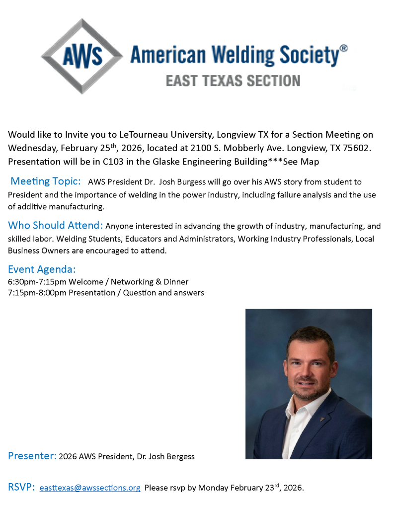We would like to invite you to LeTourneau University, Longview, TX for a Section Meeting on Wednesday, February 25, 2026.