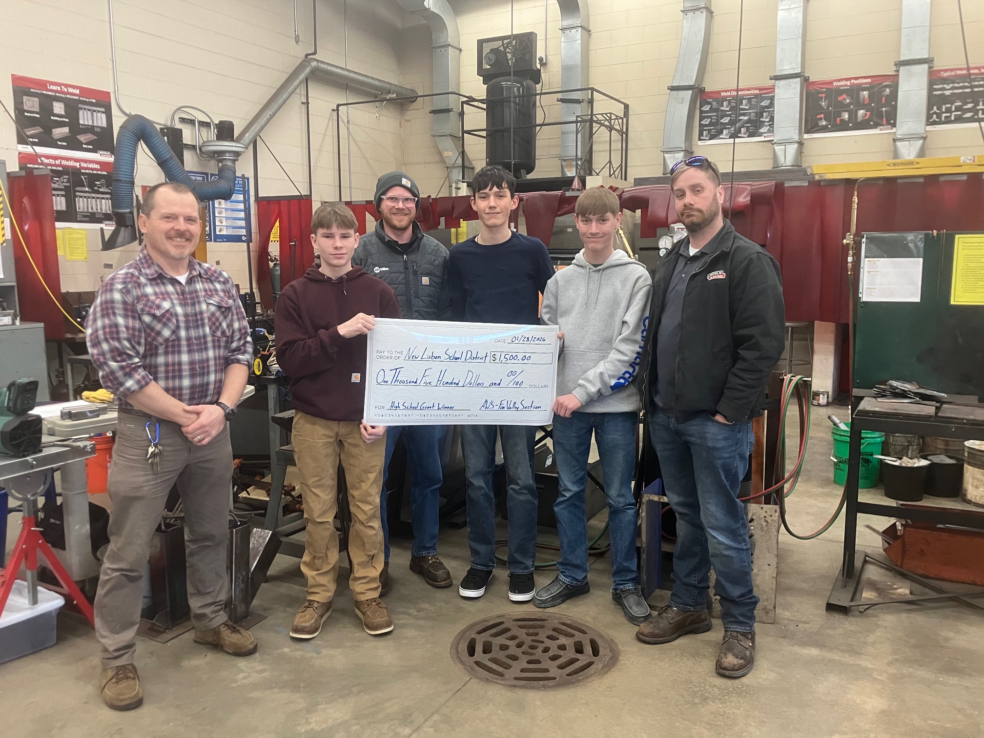 This years winner was New Lisbon High School in New Lisbon, Wisconsin. On Wednesday, January 28th, Zach MacMullen (Chairman) and Justin Wolfram (Treasurer), stopped into New Lisbon High School to drop off the donation to Ben Morey (Technology and Engineering Teacher). Ben gave Zach and Justin a tour of his labs and introduced him to several students. The donation will be used to help replace an 18 year old welder.