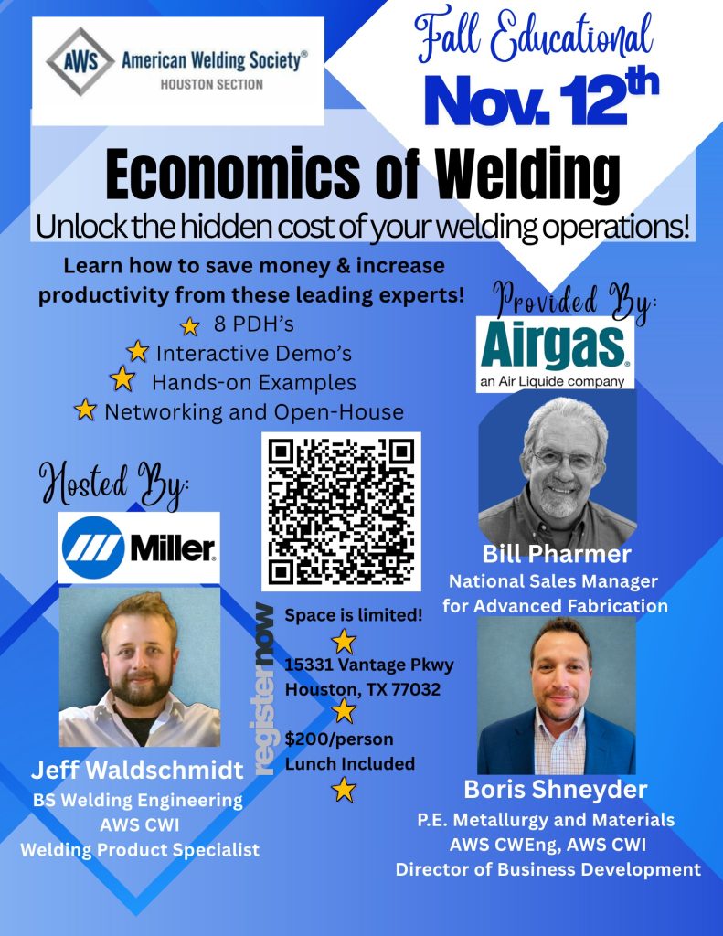 Come join us in Houston, TX! Miller Electric will be hosting our Section’s Event on November 12th at 8:00 AM.