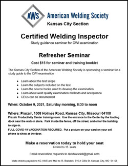 Join Us on Saturday, October 9thforAWS Certified Welding InspectorStudy Guidance Seminar |