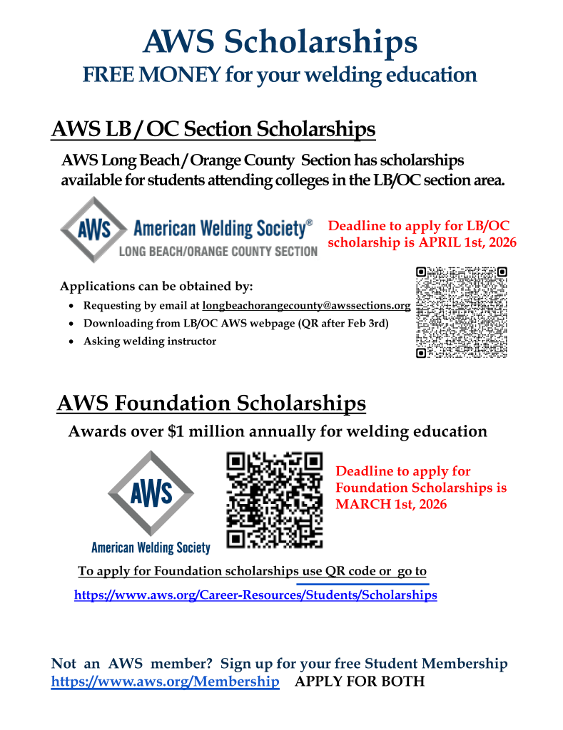 Our section has scholarships available for students attending colleges in the LB/OC section area. The deadline to apply for the LB/OC scholarship is April 1, 2026.