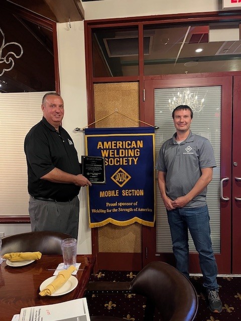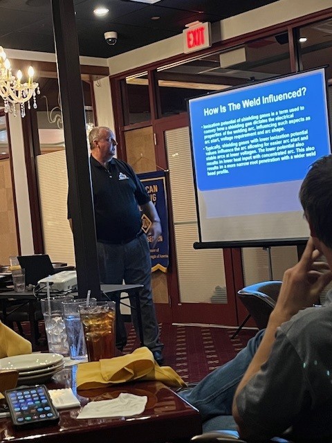 Event Summary: The Mobile Section held their October meeting at a local restaurant, Ralph & Kacoo’s. There were 36 in attendance at the meeting. The speaker for the night was Stephen George with WESCO Gas & Welding Supply, Inc. He gave a presentation on spec gases. Steven has an extensive background in the industry, specifically in specialty gases. Not only was Stephen our speaker for the evening, he is one of the newest members of the Mobile Section Executive Committee. Welcome Stephen! A big “Thank You” goes to WESCO Gas & Welding Supply, Inc. and Miller Electric for sponsoring the meeting. A split the pot drawing was held and door prizes were awarded.