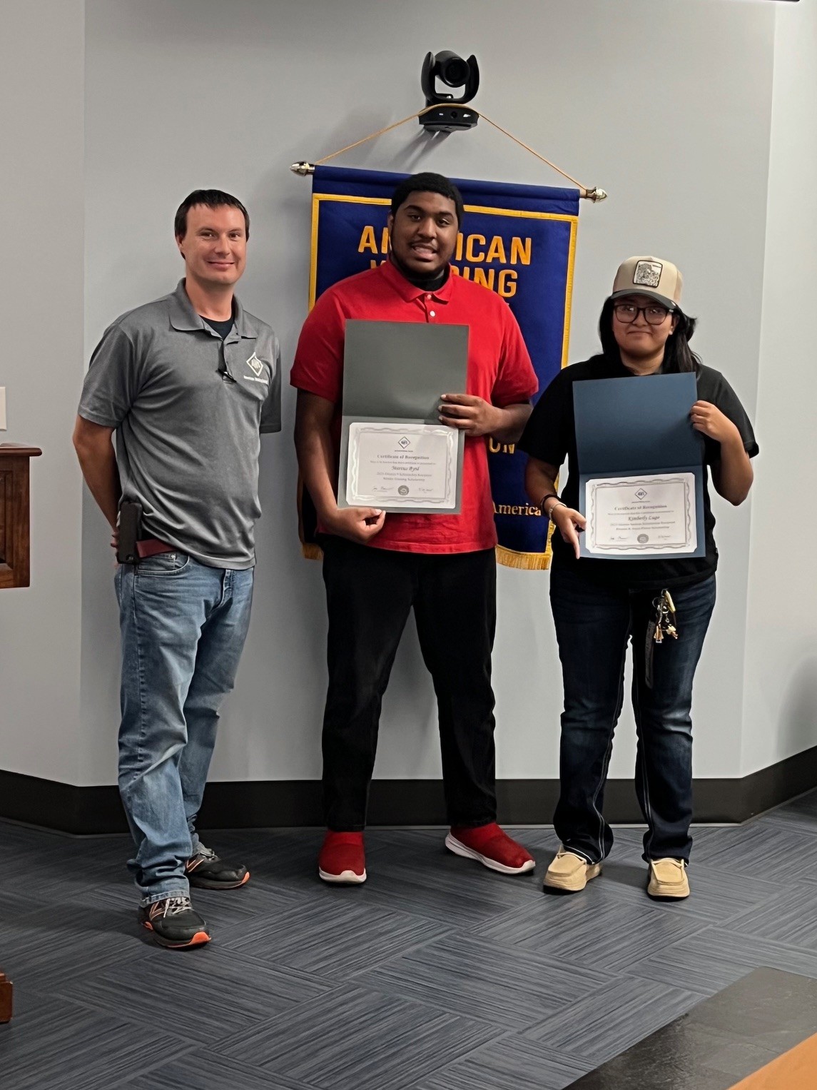 Two scholarship recipients were recognized, Marcus Byrd and Kimberly Lugo. All students in attendance received