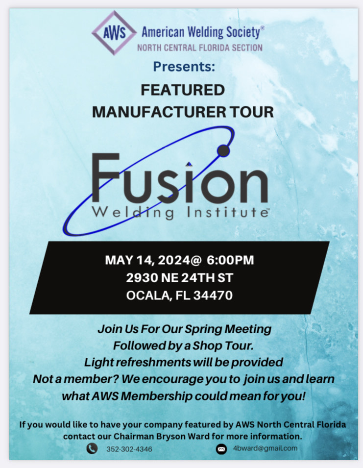 ?Join Us 5/14 for Fusion Welding Institute Tour?