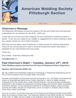 The Pittsburgh AWS Section is proud to present a full line up of plant tours and technical presentations for its members for the 2018 − 2019 year.