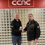 Nathan Moyer Airgas, receiving gift card from Huck Hughes Pittsburgh Chairman