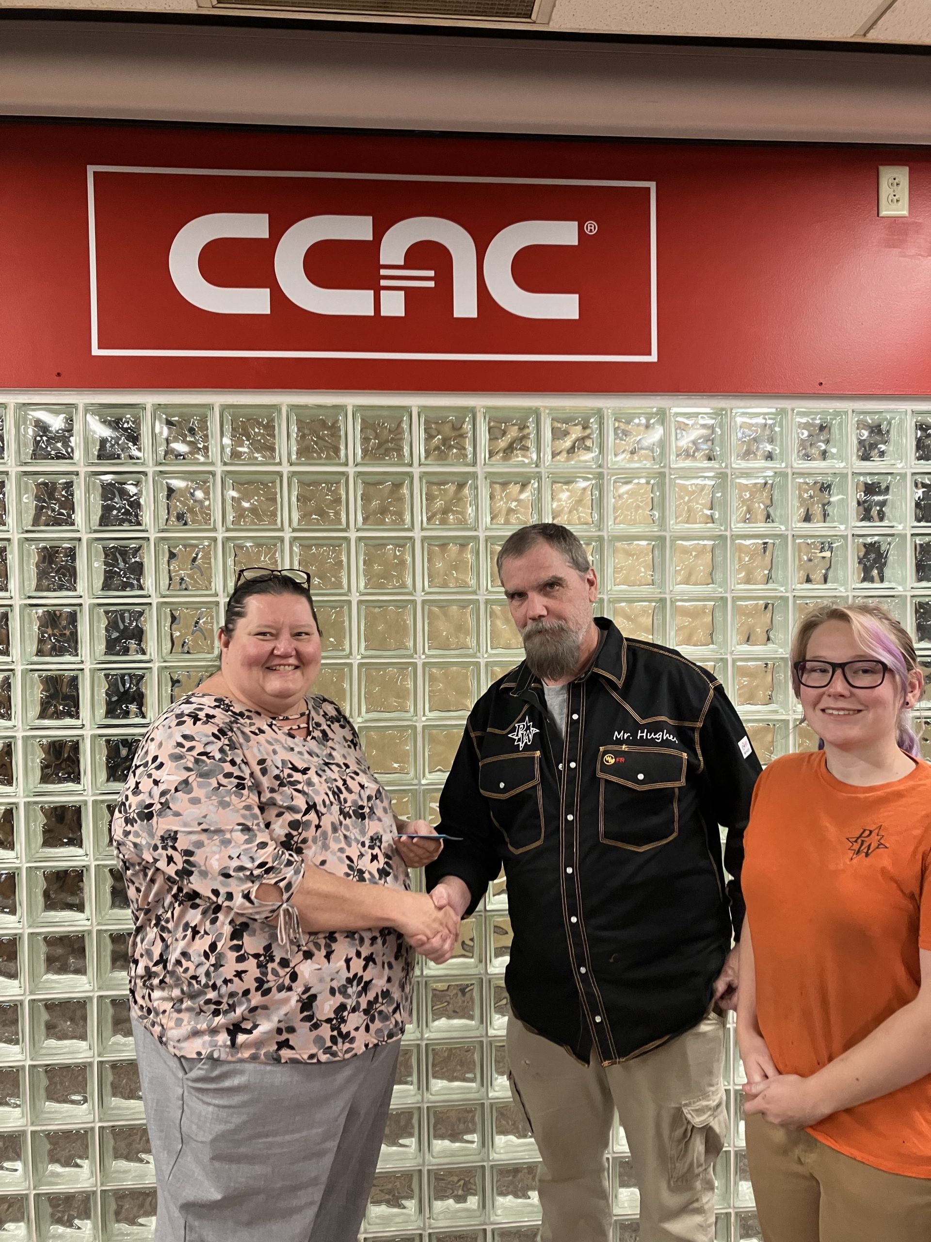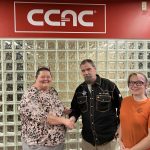 From left Jennifer Conan’s, Executive Director CCAC West Hills Center receiving gift card from Huck Hughes Pittsburgh Chairperson, Reagan Eichert Student Chapter Chairperson
