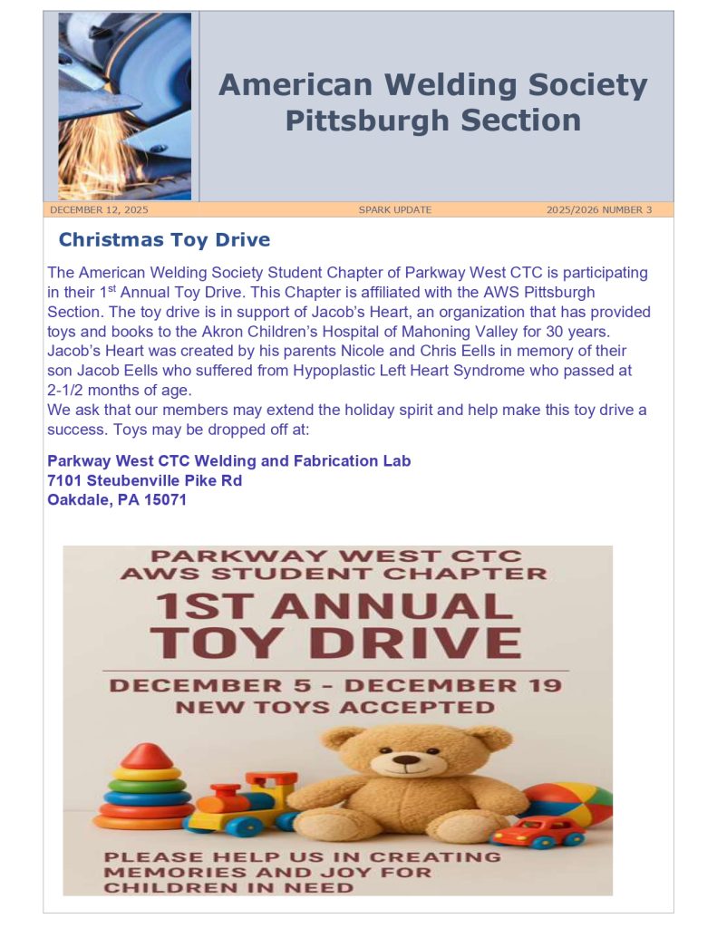 By britchieDecember 15, 2025Category: Uncategorized Location: Parkway West CTC Welding and Fabrication Lab – 7101 Steubenville Pike Rd Oakdale, PA 15071