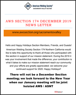 AWS Section 174 Northern California would like to take this opportunity to thank all those who participated with the section in support of our mission statement. During the 2019 it was your involvement that made the difference; your contribution is what it takes to make our mission statement reach our community and your efforts are greatly appreciated; we welcome your continued support for 2020.