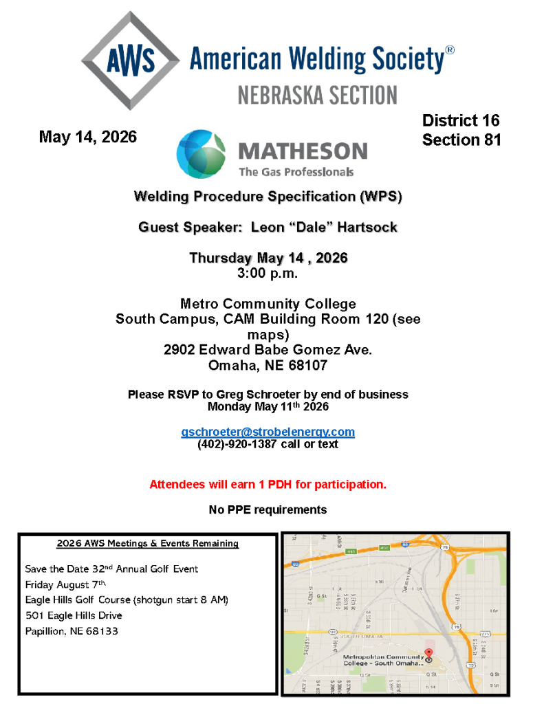 May Meeting Welding Procedure Specification (WPS) with 2025 Award Presentation