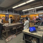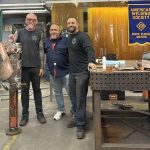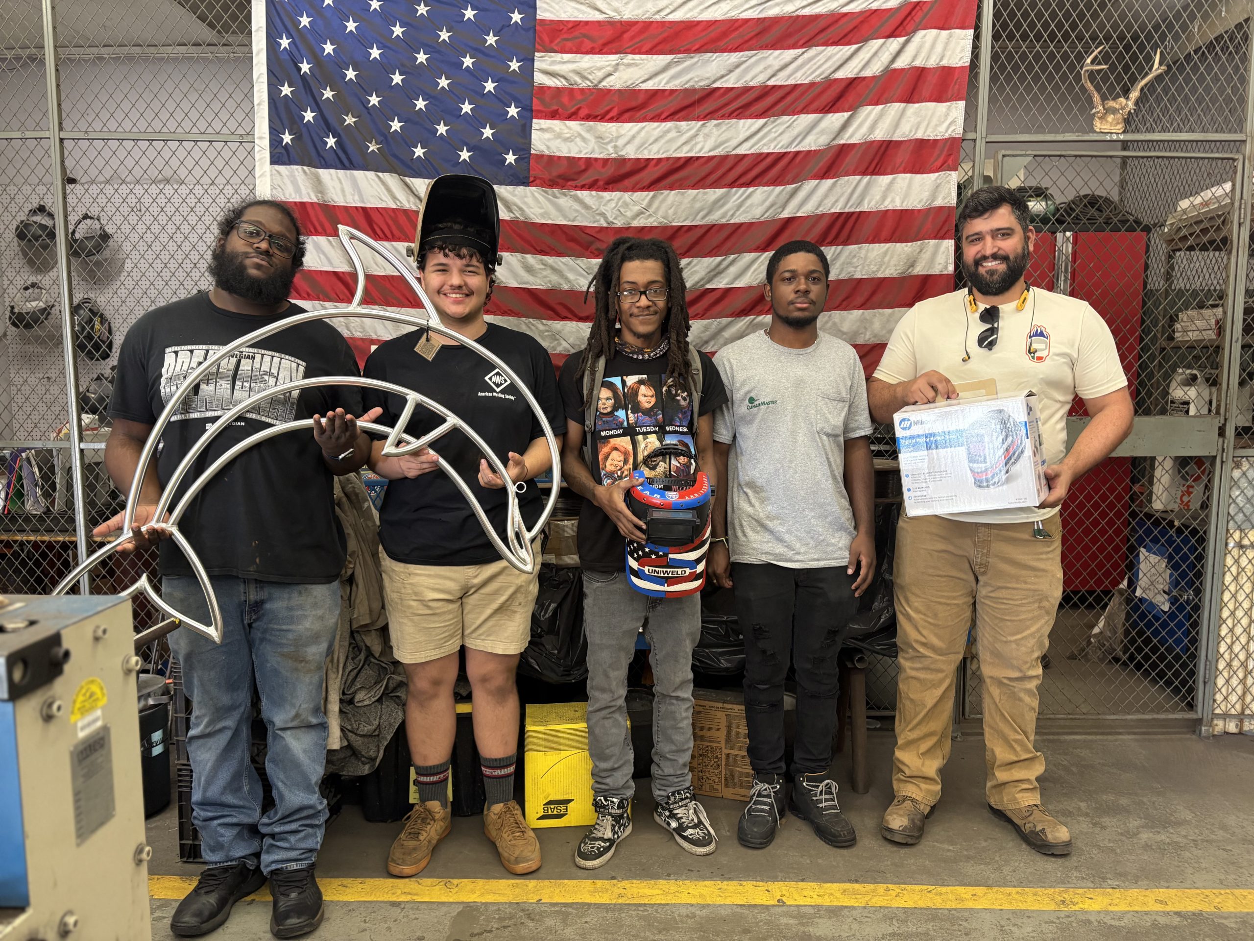 Event Summary: Hale, who masterfully combines engineering precision with creative craftsmanship to create unique sculptures and luxury furniture, kicked off the event by speaking with attendees in the welding program’s classroom, followed by a “Chaos Engineered” live art demonstration in the lab. Accompanied by his colleague, Faga, they used various processes and tools to turn scrap metal into a tiki sculpture holding a welding shield, wrapped in a gator, for attendees to see. The ArcCapture™ weld camera system from Miller Electric was in use as well.