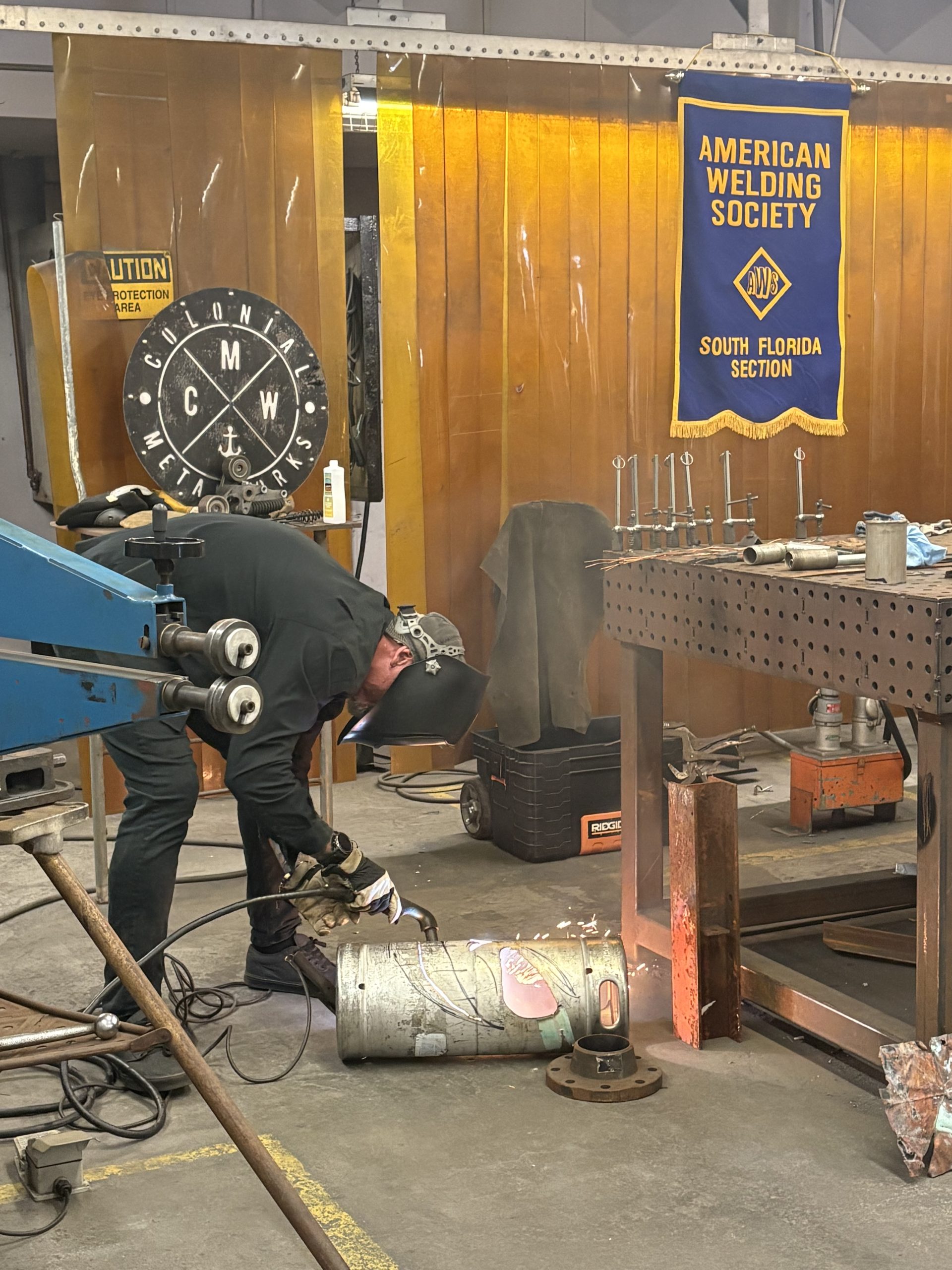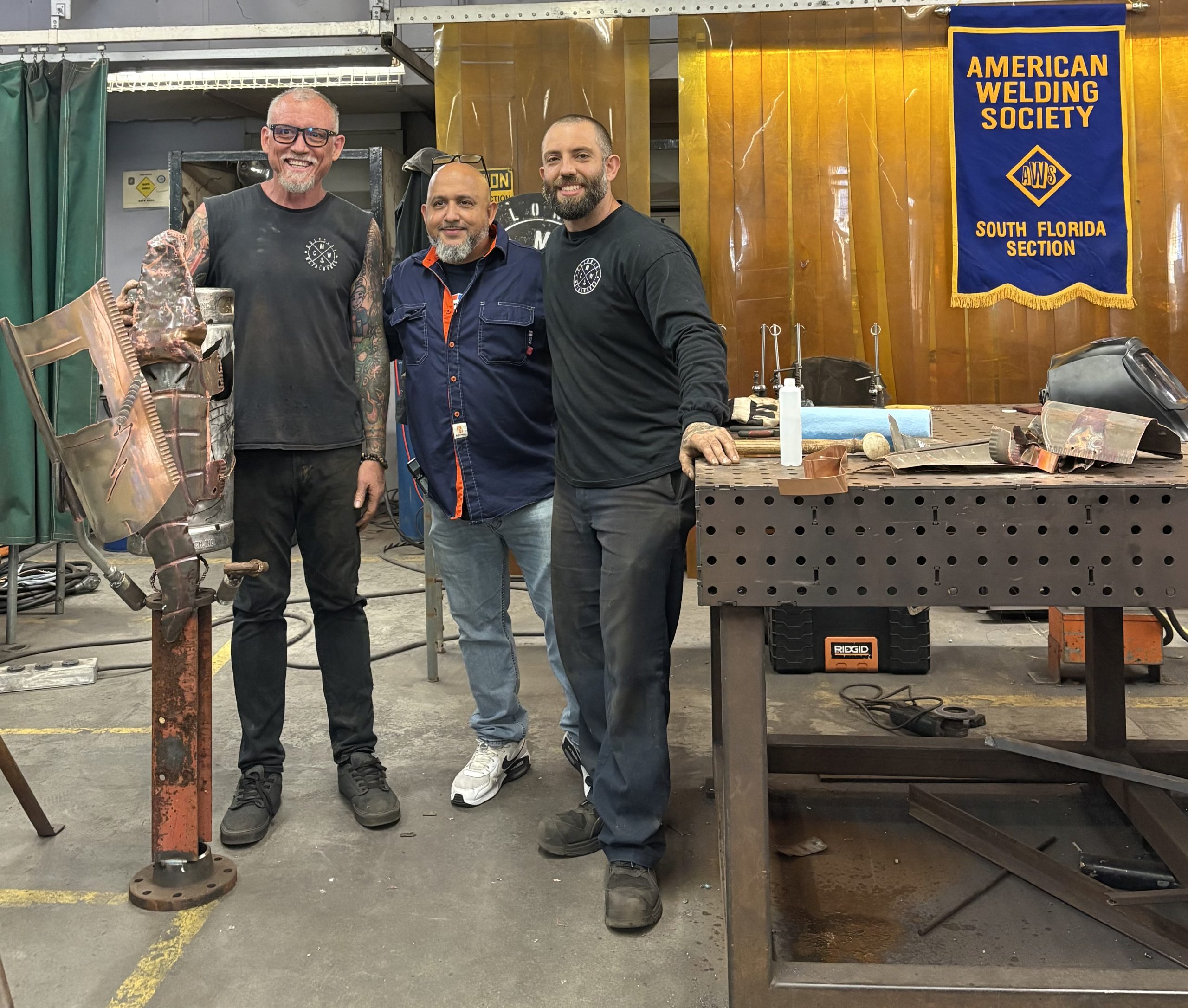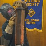 The meeting included various raffles, with Frank Vargas from Uniweld Products serving as emcee. Garth Garrett won a lamp, donated by CMW; Debon Cumberland earned a welded dolphin, also donated by CMW; and Jakari Ashley got a Uniweld leather welding helmet. For attendees who donated $25 to the Section, a welding helmet with red, blue, and black graphics was raffled. That prize was won by Oscar A. Guerrero, the welding instructor at Miami Lakes Educational Center and Technical College, who opened the doors to the Section; he intends to put it to good use in their welding program. In addition, as the educators in attendance, Guerrero and James Scott, the applied welding technologies instructor at McFatter Technical College, Davie, Fla., received AWS Fundamentals of Welding books.