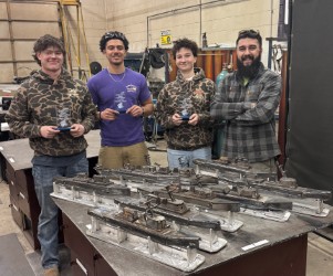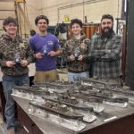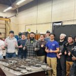 Ryan Adams with students at the Skills Competition, standing behind the amazing project they were given